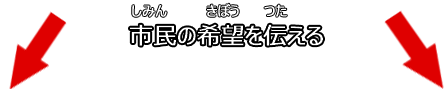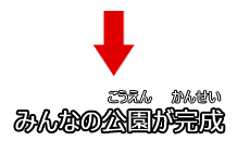 市民 「みんなの公園がほしいな!」 「緑の多い公園がいいです」 「運動場がある公園がほしい」 「大きいすべり台があったらいいな」 市議会 ➀市民の希望をよく調べて、話し合い、市長につたえる。 市長 ②市民の希望をかなえるためどんな公園をどのくらいのお金をかけて作るか計画を立て、市議会に説明する。 ③市民が望む公園の計画になっているかをよく話し合い、正しい計画ならば認める。 ④市議会の議決を受けて、公園を作る。 マンガ 「相模ひばり議員の活動 ~新しい公園をつくるぞ~」
